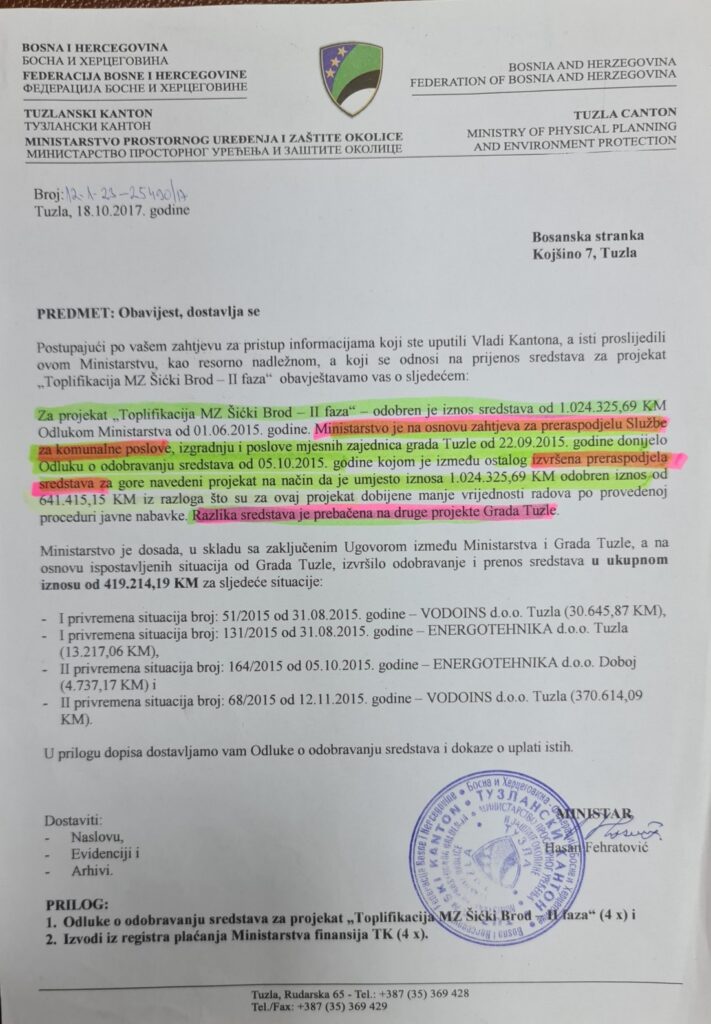 Prijavljeni su direktno ili u suizvršenju krivičnog djela prevarili vijećnike Gradskog vijeća Tuzla, jer su u obrazloženju Budžeta za 2017. godinu prilikom navođenja odredbi Zakona o izdvajanju i usmjeravanju dijela prihoda preduzeća ostvarenih radom termoelektrana dodali nepostojeću alineju – finansiranje kulture, pa je više miliona KM utrošeno nenamjenski, a na štetu zdravlja građana. SDP nikada nije dozvolio da se dostavi izvještaj o utrošenih oko 30 miliona KM, niti je dozvolio raspravu na prijedloge vijećnika BOSS-a Mirnesa Ajanovića o ubrzavanju procesa toplifikacije i podizanjem kredita za besplatnu potpunu toplifikaciju grada kako bi se zaštitilo zdravlje građana i omogućili bolji uslovi života, na način kako je to uređeno u MZ Šićki Brod i Bukinje po zahtjevu vjećnika Mirnesa Ajanovića, a kredit bi se vraćao iz sredstava za rad Termoelektrane Tuzla, koja iznose oko pet miliona KM godišnje.
