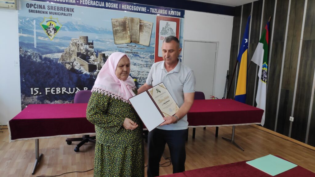 U povodu obilježavanja 11. jula Dana sjećanja na genocid u Srebrenici Bošnjačka zajednice kulture “Preporod” , gradsko društvo Srebrenik danas je nani Fati Orlović uručilo priznanje za doprinos u borbi za ljudska prava.