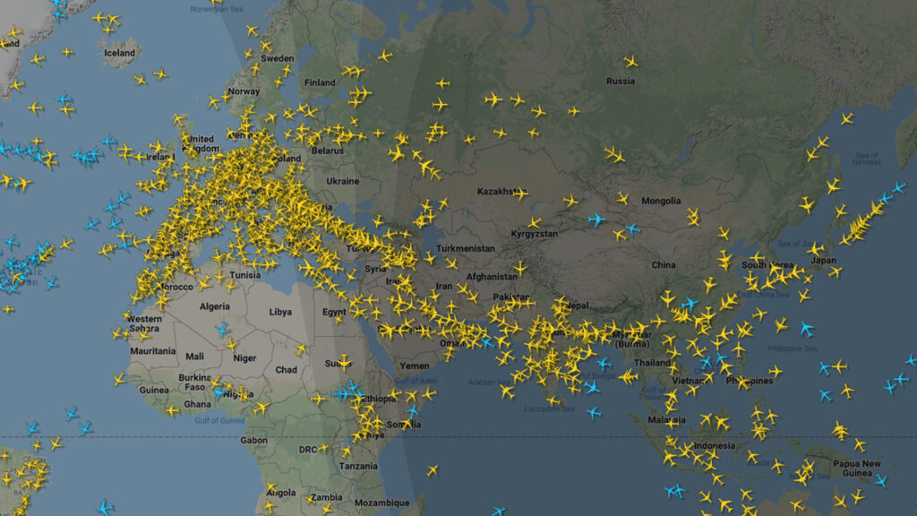 Također možete vidjeti i Bjelorusije preleti vrlo mali broj aviona, a granični dio Rusije sa Ukrajinom također je zatvoren za putničke avione.